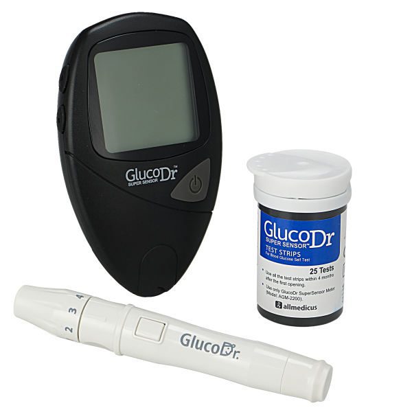 دستگاه تست قند خون گلوکو داکتر GLUCO Dr ابزاری برای پایش و اندازهگیری قند خون بیماران است. شما با استفاده از این دستگاه به راحتی میتوانید میزان قند خون خود را بررسی کنید. زمانی که شما این دستگاه را خریداری کنید همراه با این دستگاه گلوکومتر لوازم جانبی دیگری نیز دریافت میکنید، که شامل: تعدادی سوزن یدک، نوارهای کاغذی مخصوص دستگاه و یک وسیله مانند خودکار.