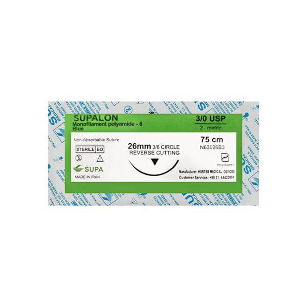 مشخصات فنی : Supa Reverse Cut Surgical Nylon Thread