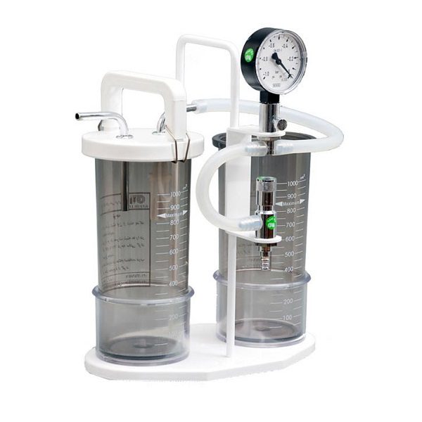 شیشه نوع یك لیتری درجه بندی شده به سی سی از جنس پلی كربنات قابل استریل و نشكن می باشد هر ساكشن دارای 2 عدد لیوان یك لیتری و یك عدد درب و یك عدد كلید قطع و وصل و یك عدد ولوم جهت كم و زیاد كردن خلاء و یك عدد گیج وكیوم كه بوسیله لوله های سیلیكونی به باتل متصل شده است می باشند. كلیه قطعات یدكی ساكشن ها جهت سرویس و تعمیرات در شركت موجود است.